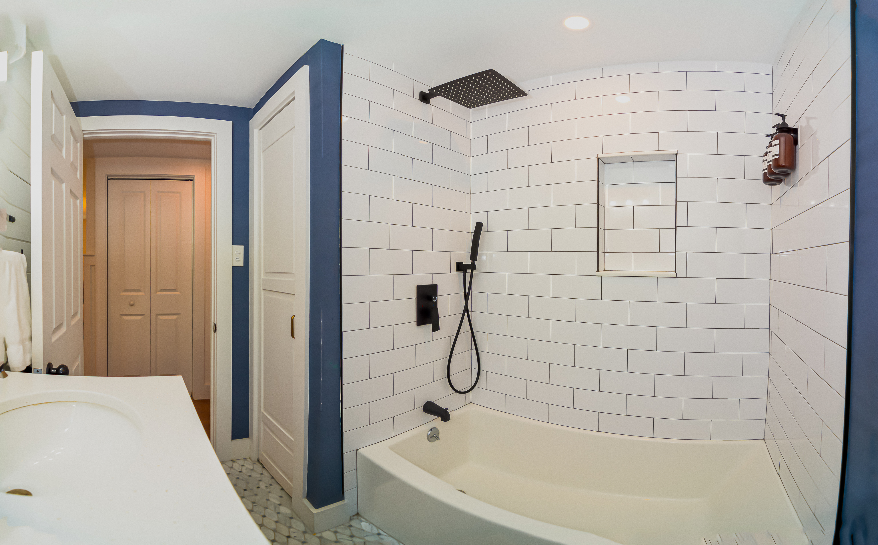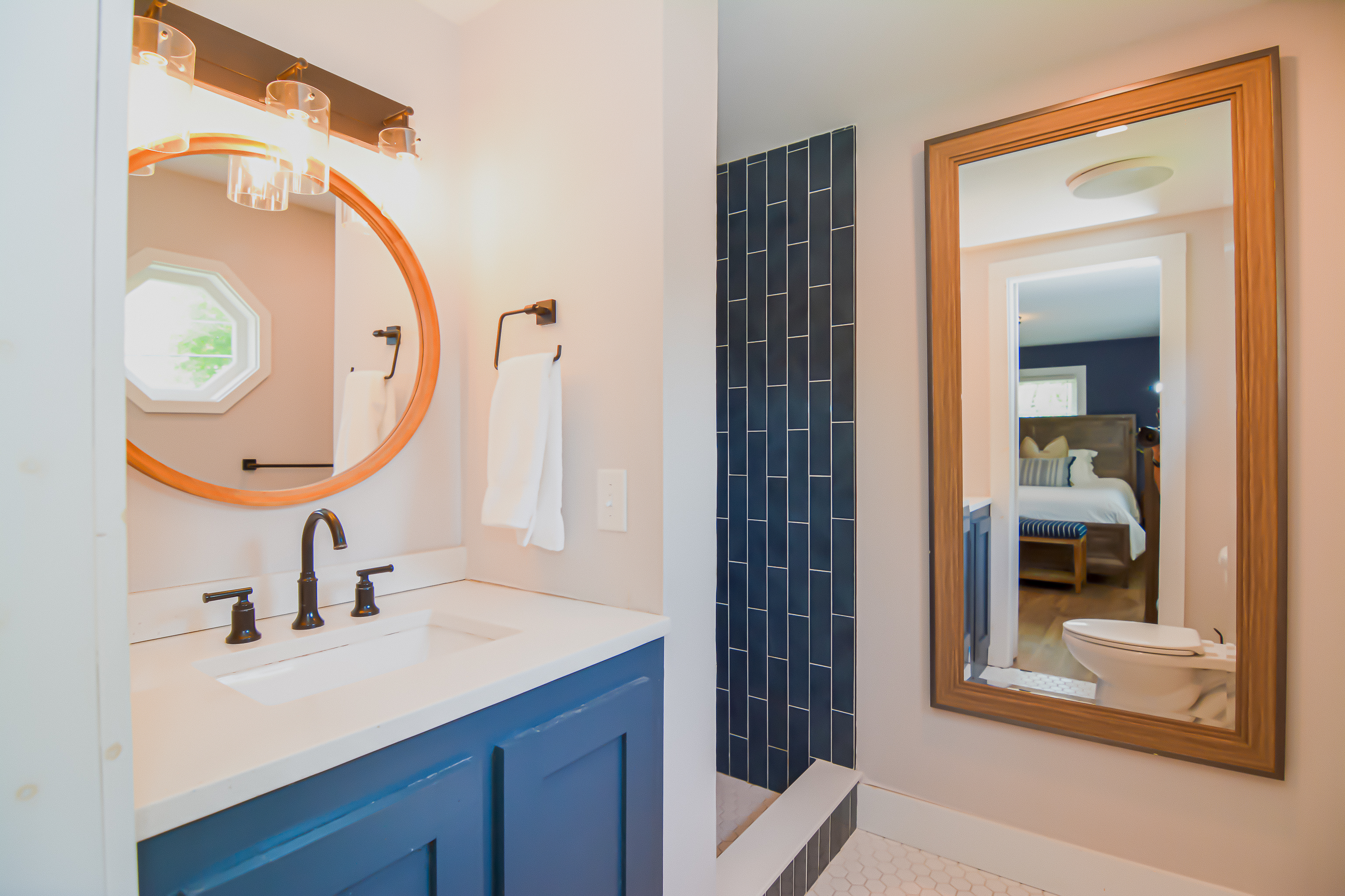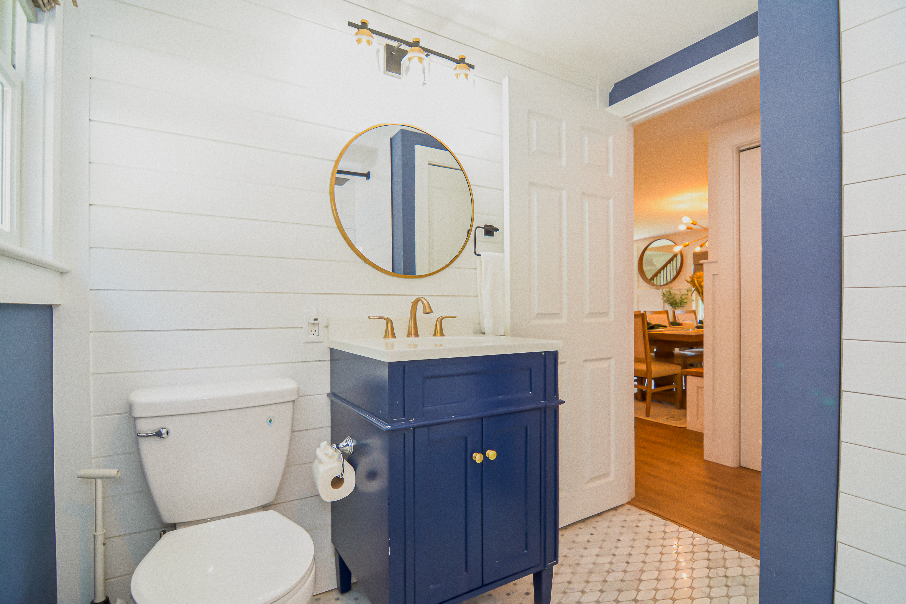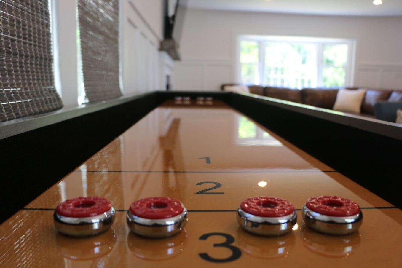 Inside, the bright and airy living room features a cozy gas fireplace, creating a welcoming space for gathering after a day at the beach. The well-appointed bathrooms add a touch of luxury with their clean, modern design and refreshing rain head showers. The finished basement boasts a speakeasy-style bar, complete with a pool table and a relaxed ambiance, making it the ideal spot for game nights and casual fun.