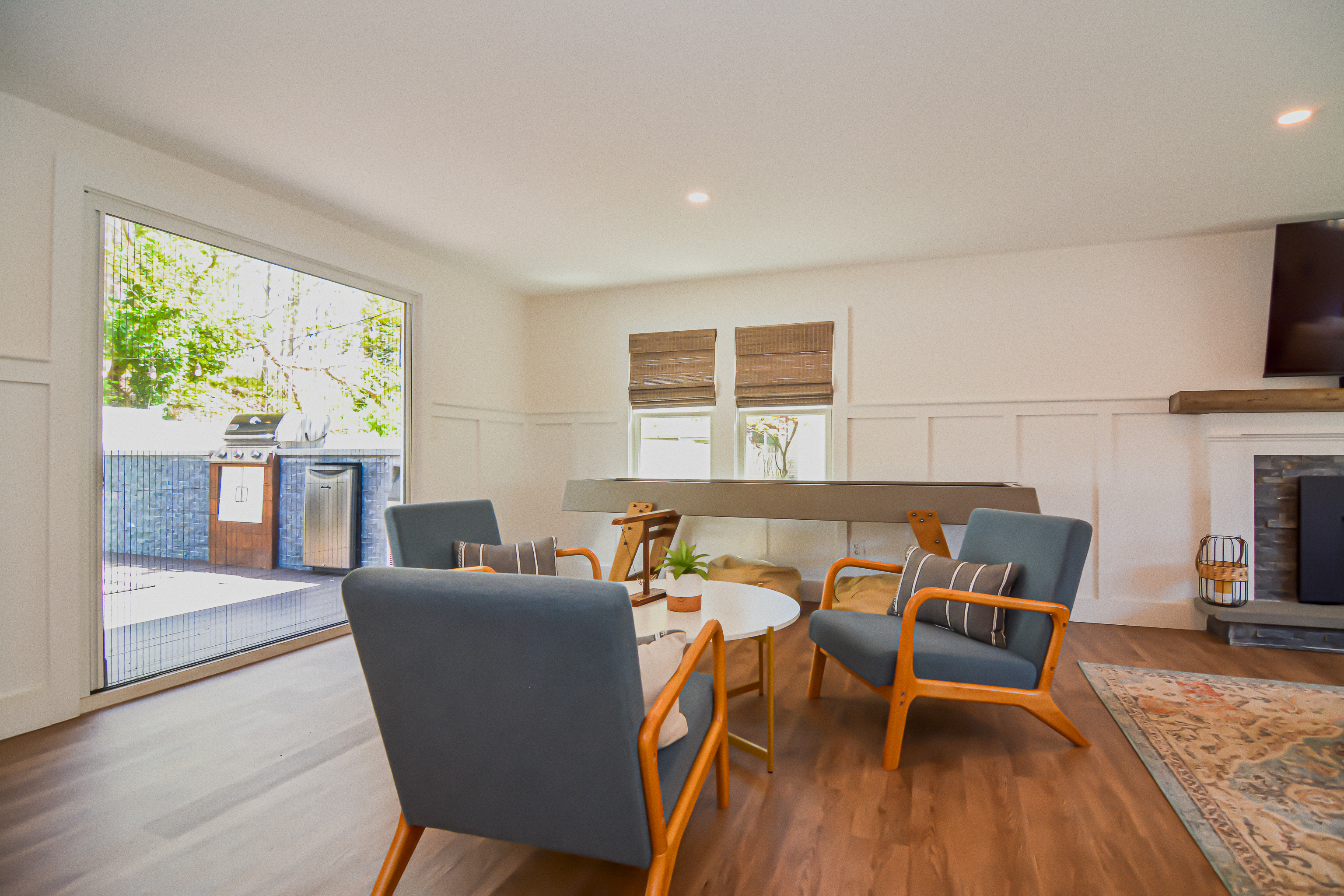Step outside into a private backyard oasis, where you’ll find a hot tub for unwinding under the stars, a fully equipped outdoor kitchen for grilling up feasts, and a gas fire pit surrounded by plenty of seating for evenings filled with conversation and laughter. The beautifully landscaped yard provides ample space for both relaxation and entertainment.